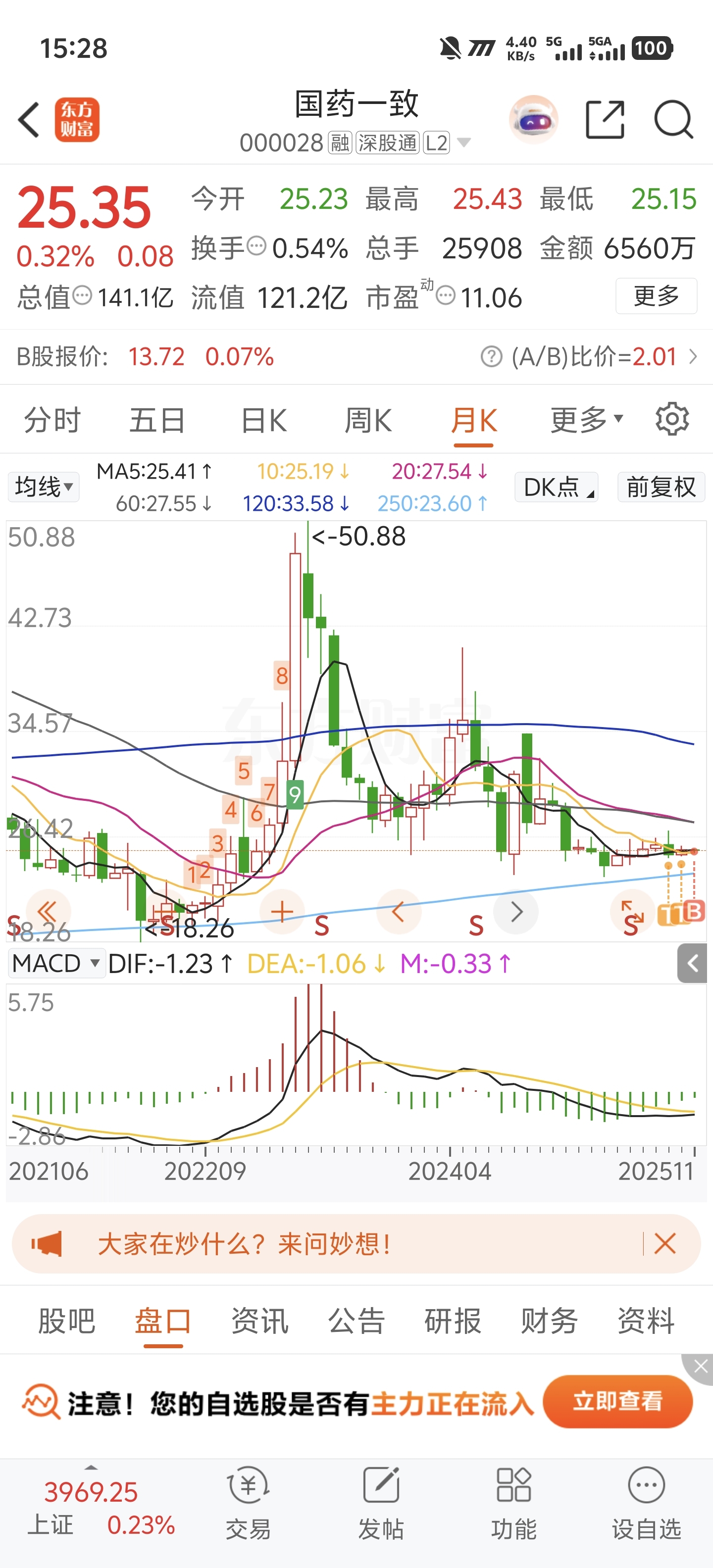 $国药一致(SZ000028)$ 越跌越买,无线子弹加仓干