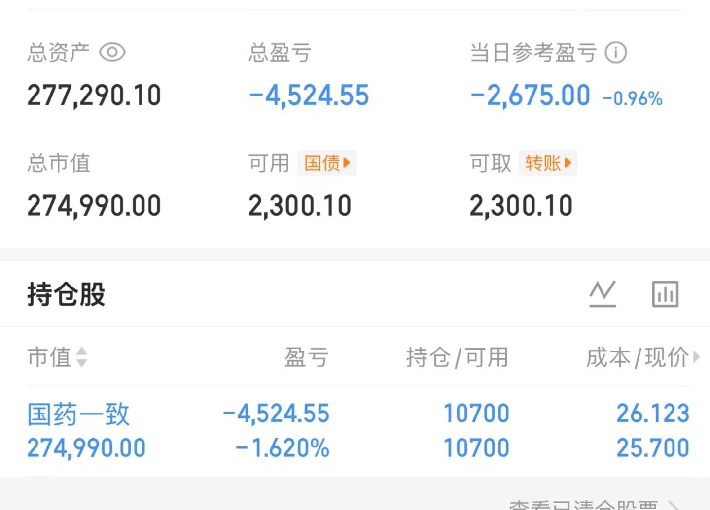 $国药一致(SZ000028)$ 国酒茅台,国药一致!没办法,你不涨,我只好加仓,每个月发了工资,有钱就加仓,摊低成本,从27块多的成本降到现在26块多一点。有本事今年一直不涨,还在25元,那么今年的工资只要有剩余的就会一直加仓,摊低成本