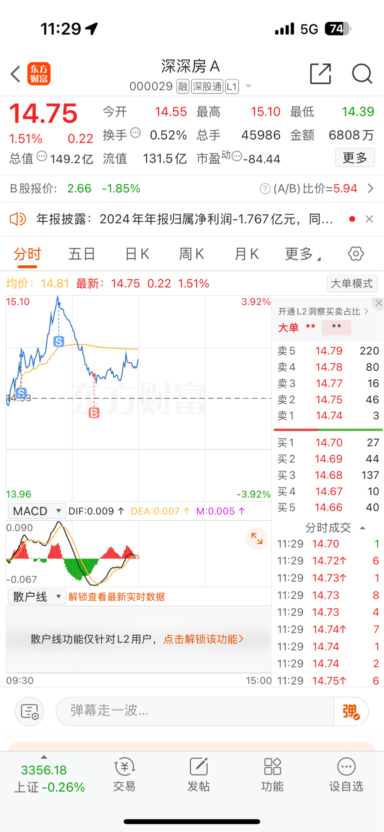 $深深房A(SZ000029)$ 大t一把
