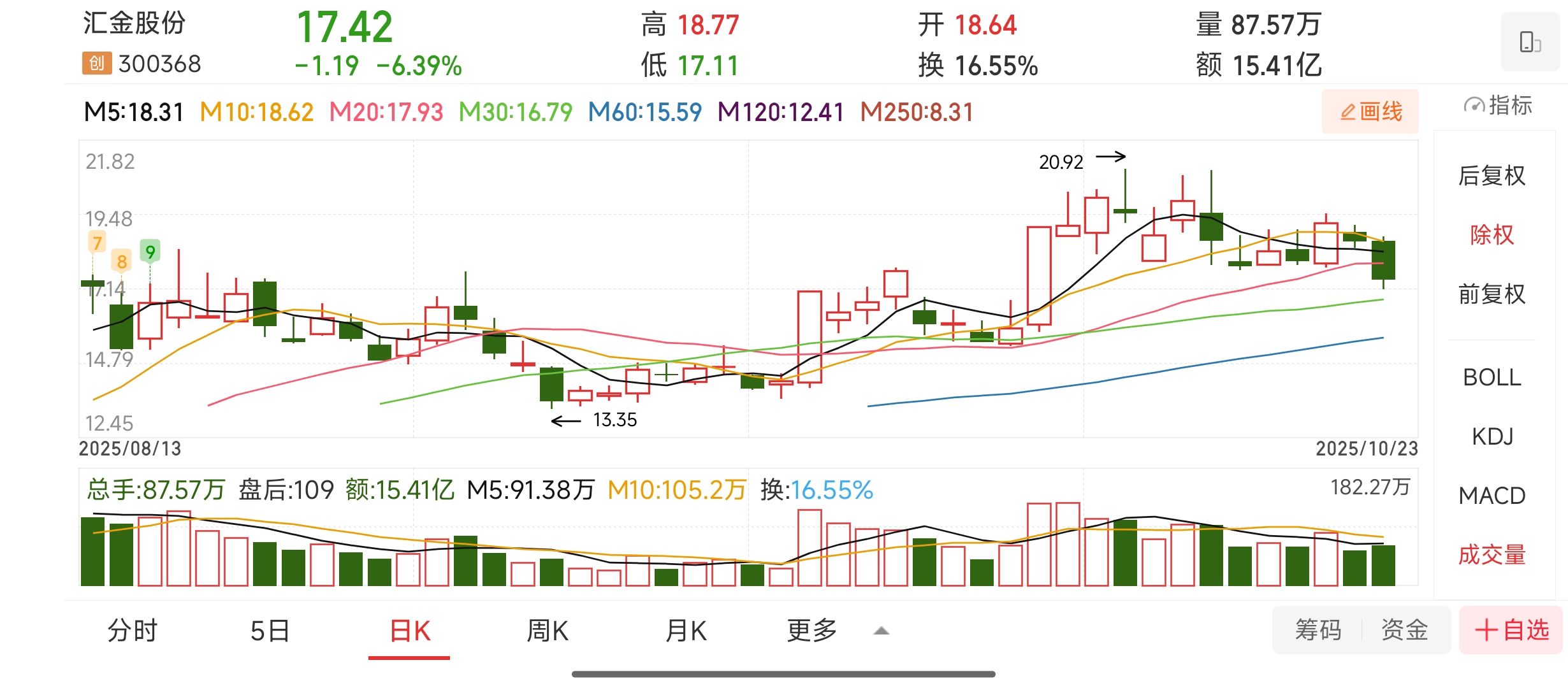 3. 汇金股份(300368):接近均线支撑的企稳
