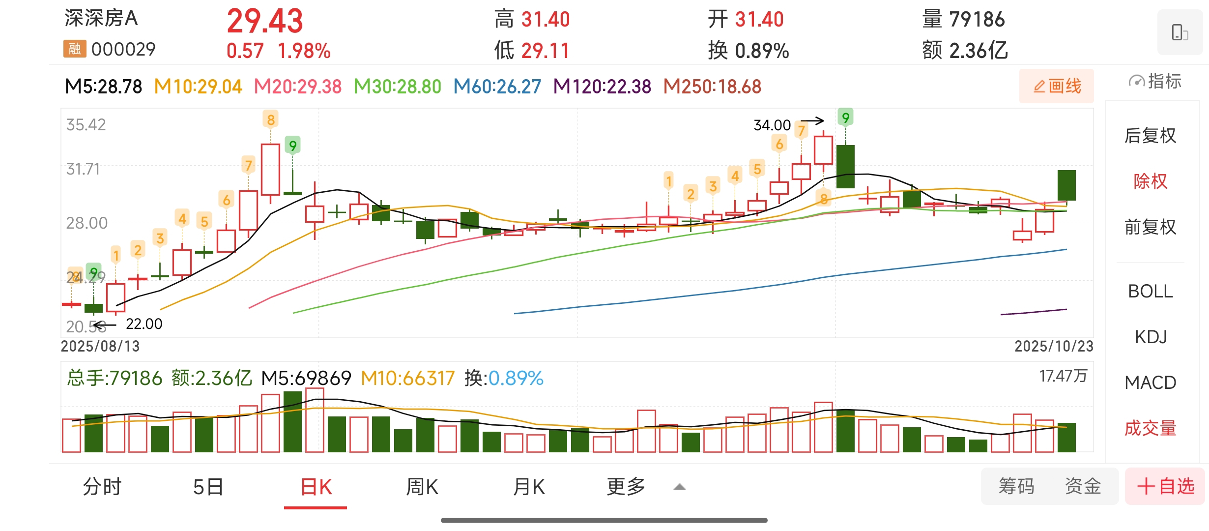 走势定位:中期处于上升趋势(M20、M30均线向上发散),属于“上涨趋势初期”区间。