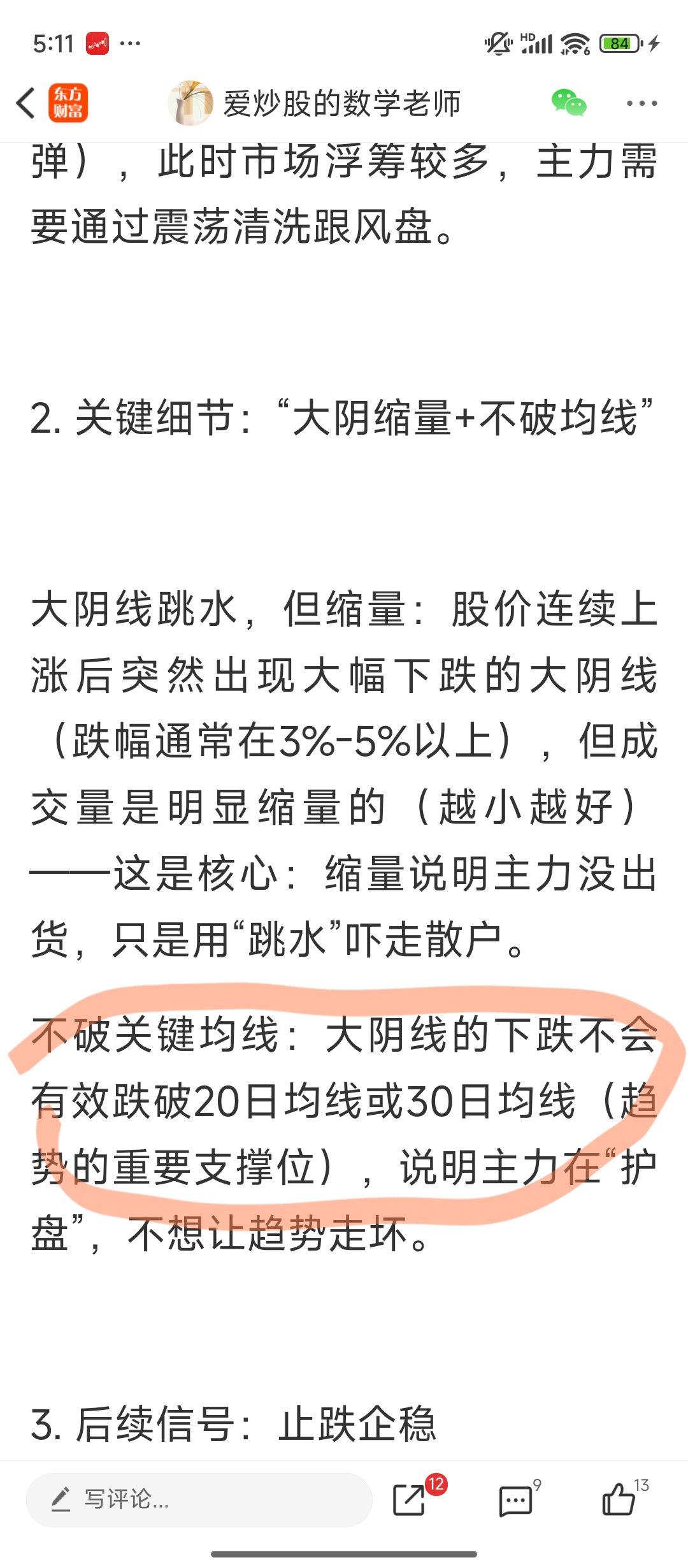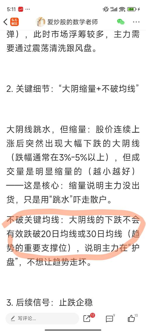 不破关键均线:大阴线的下跌不会有效跌破20日均线或30日均线(趋势的重要支撑位),说明主力在“护盘”,不想让趋势走坏。