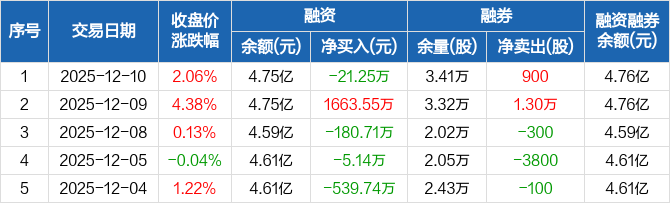 深深房A:融资净偿还21.25万元,融资余额4.75亿元(12-10)