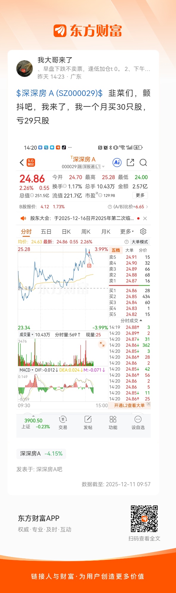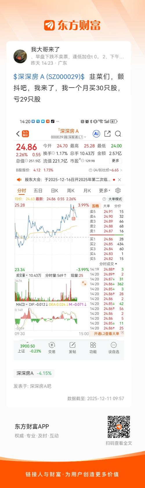 $深深房A(SZ000029)$  韭菜们,颤抖吧,我来了,我一个月买30只股,亏29只股
