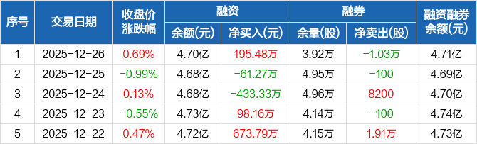 深深房A:融资净买入195.48万元,融资余额4.7亿元(12-26)