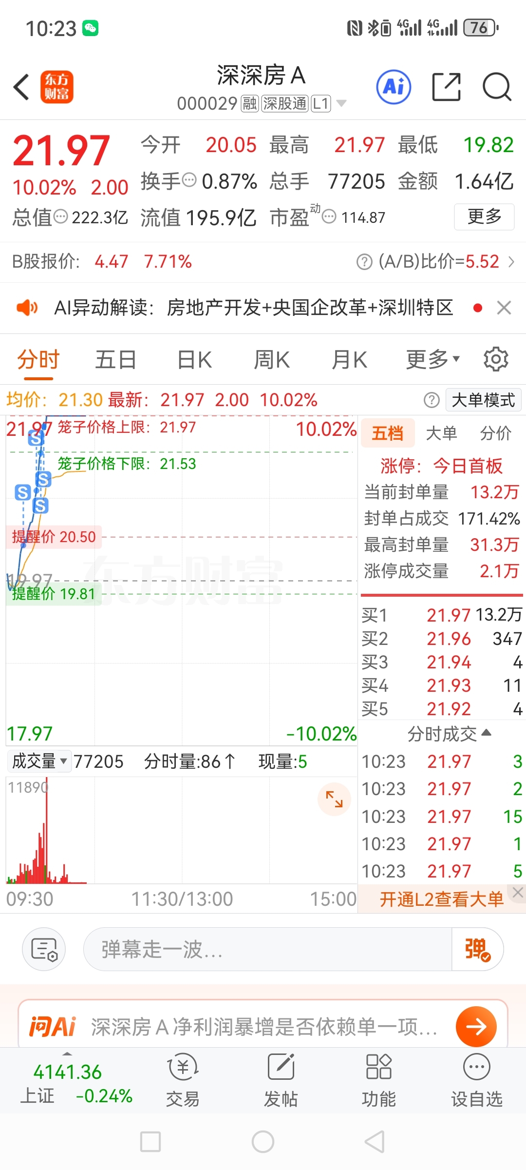 $深深房A(SZ000029)$ 卖飞了