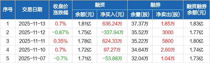 富奥股份:融资净买入636.24万元,融资余额1.81亿元(11-13)