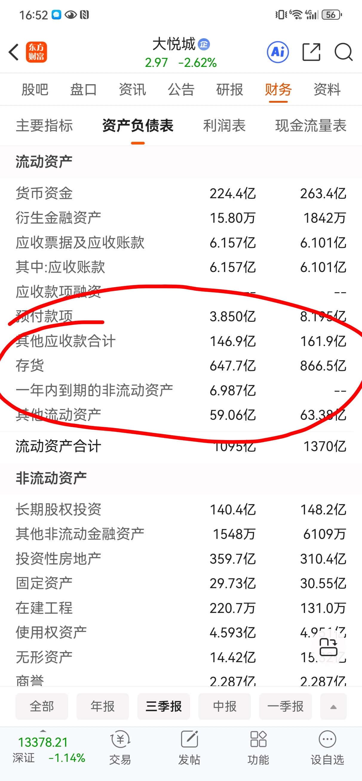 $大悦城(SZ000031)$ 存货少了200多亿,