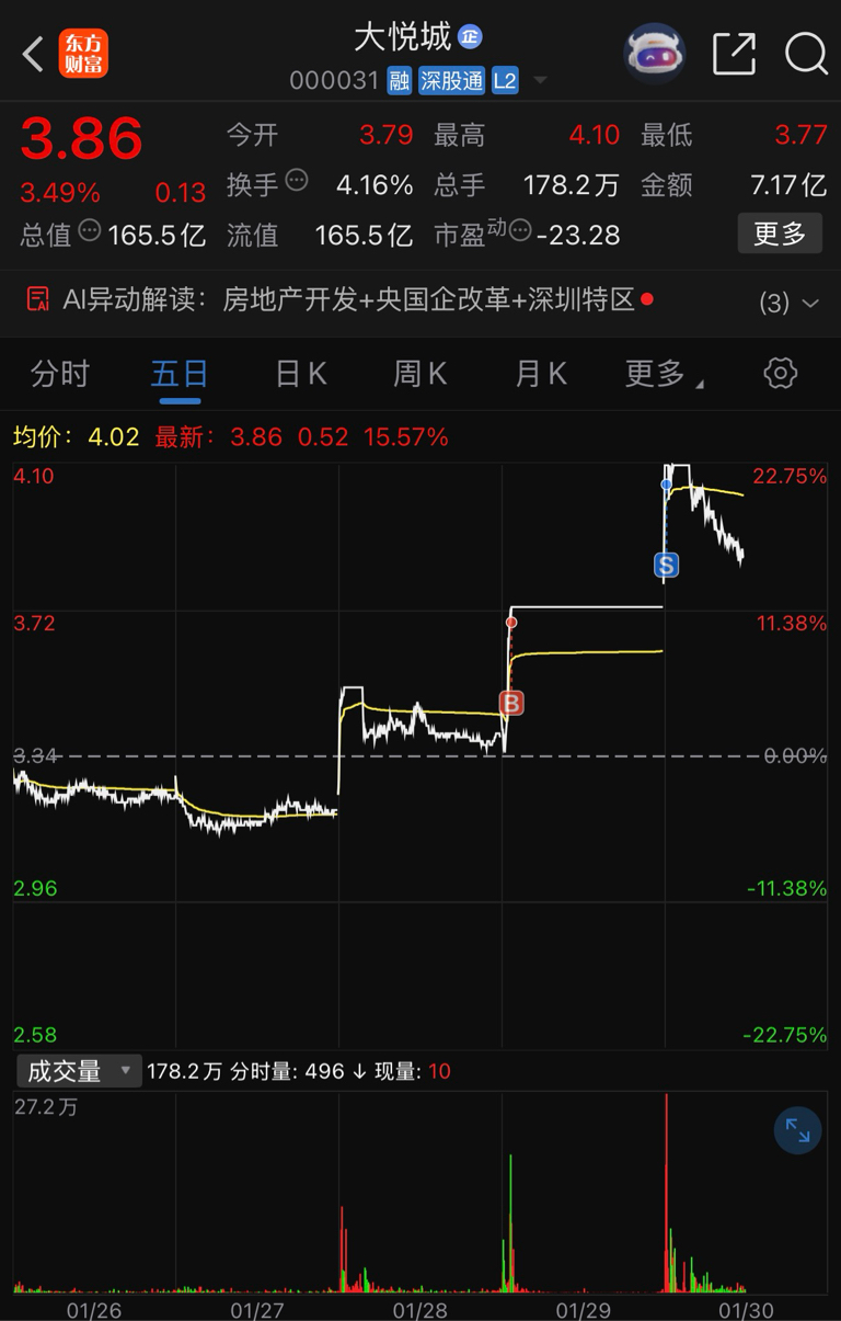 $大悦城(SZ000031)$ 5日线财富密码