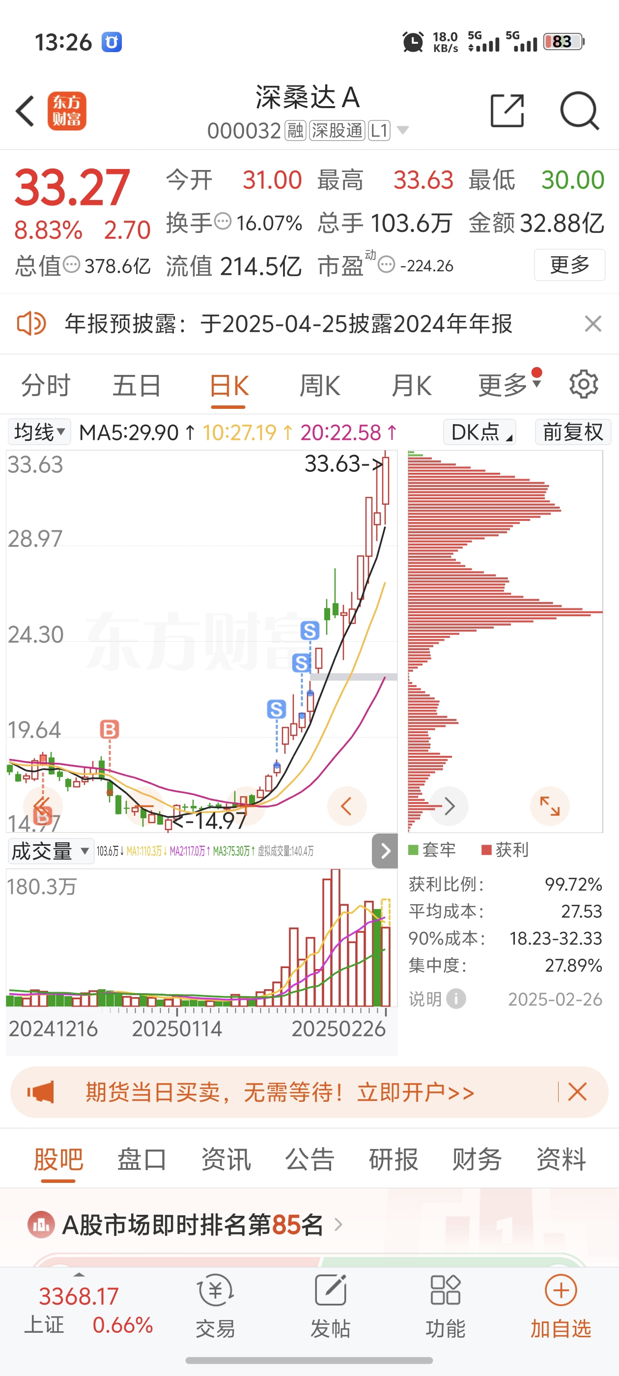 $深桑达A(SZ000032)$ 翻倍票被卖了,伤心