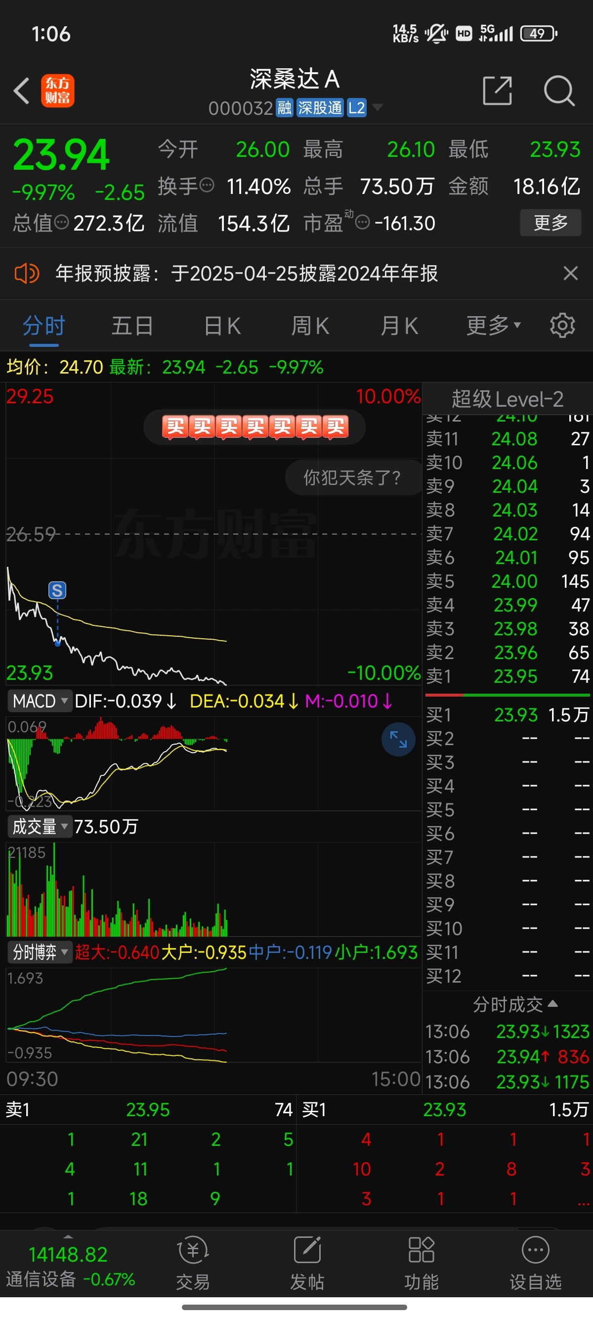 $深桑达A(SZ000032)$ 早割早解脱
