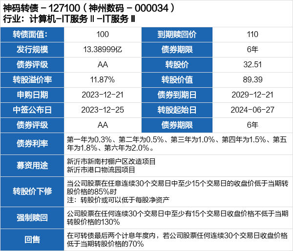 神码转债本次债券融资规模为13.38999亿。本次发行规模一般,可转债规模越大流动性越好。
