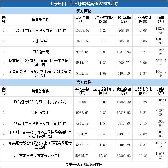 龙虎榜数据显示,今日买二为机构席位,该席位净买入1.00亿元,占龙虎榜净买额的90.82%。