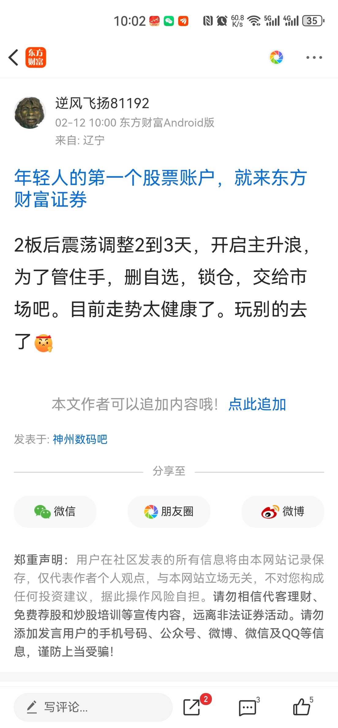 温馨提示: 1.根据《证券法》规定,禁止编造、传播虚假信息或者误导性信息,扰乱证券市场;2.用户在本社区发表的所有资料、言论等仅代表个人观点,与本网站立场无关,不对您构成任何投资建议。用户应基于自己的独立判断,自行决定证券投资并承担相应风险。《东方财富社区管理规定》