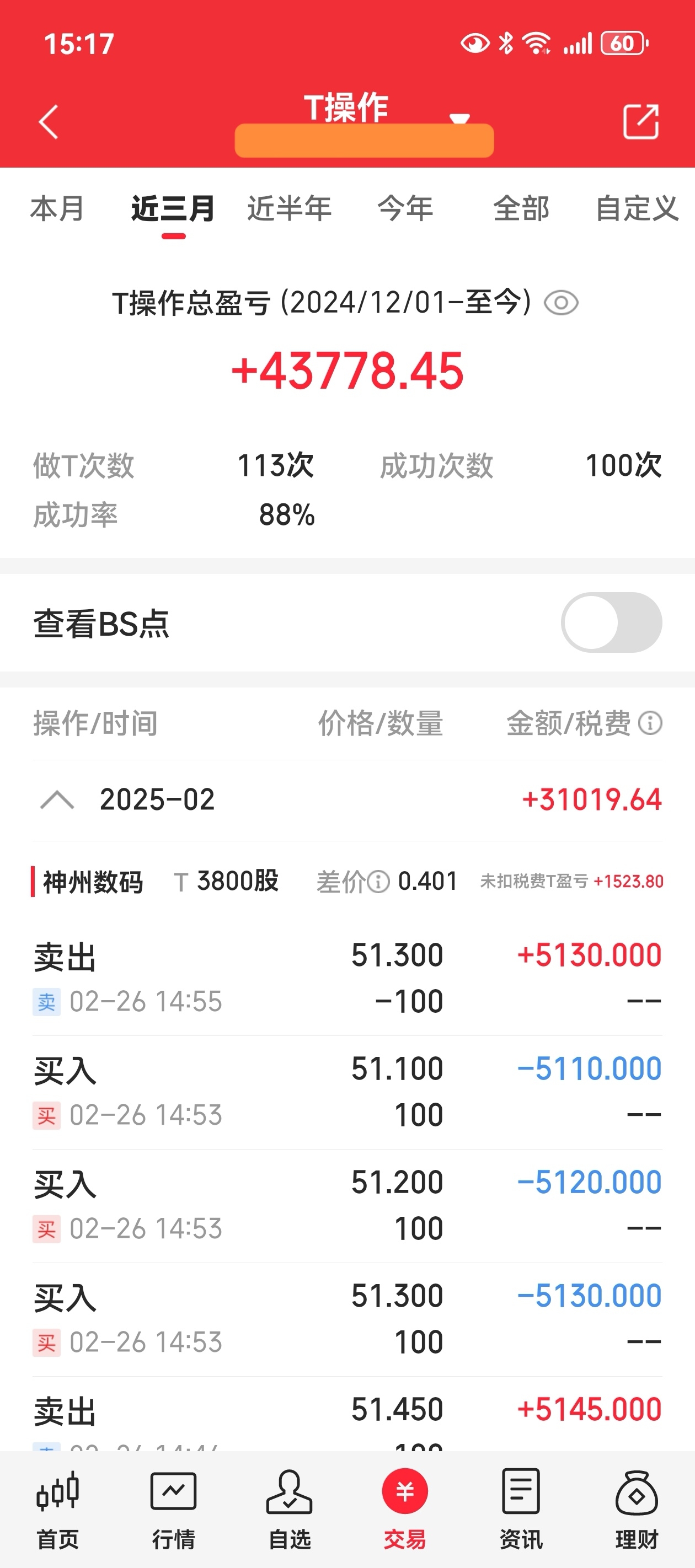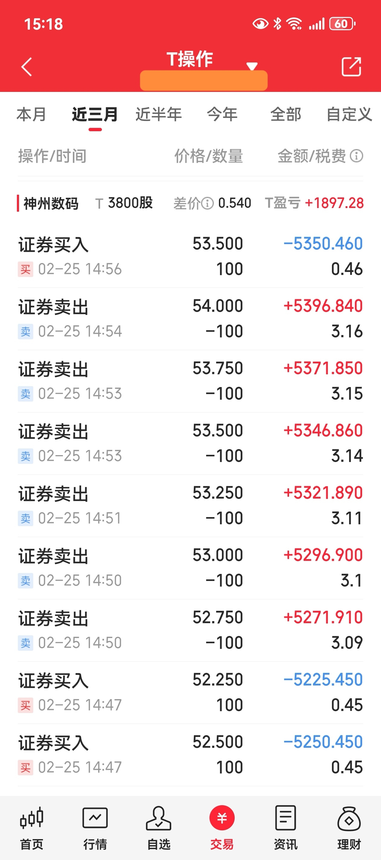 每天做T弄点酒钱不香吗?今年咱就计划陪神州数码一路做T走过去,反正长线相守,不在