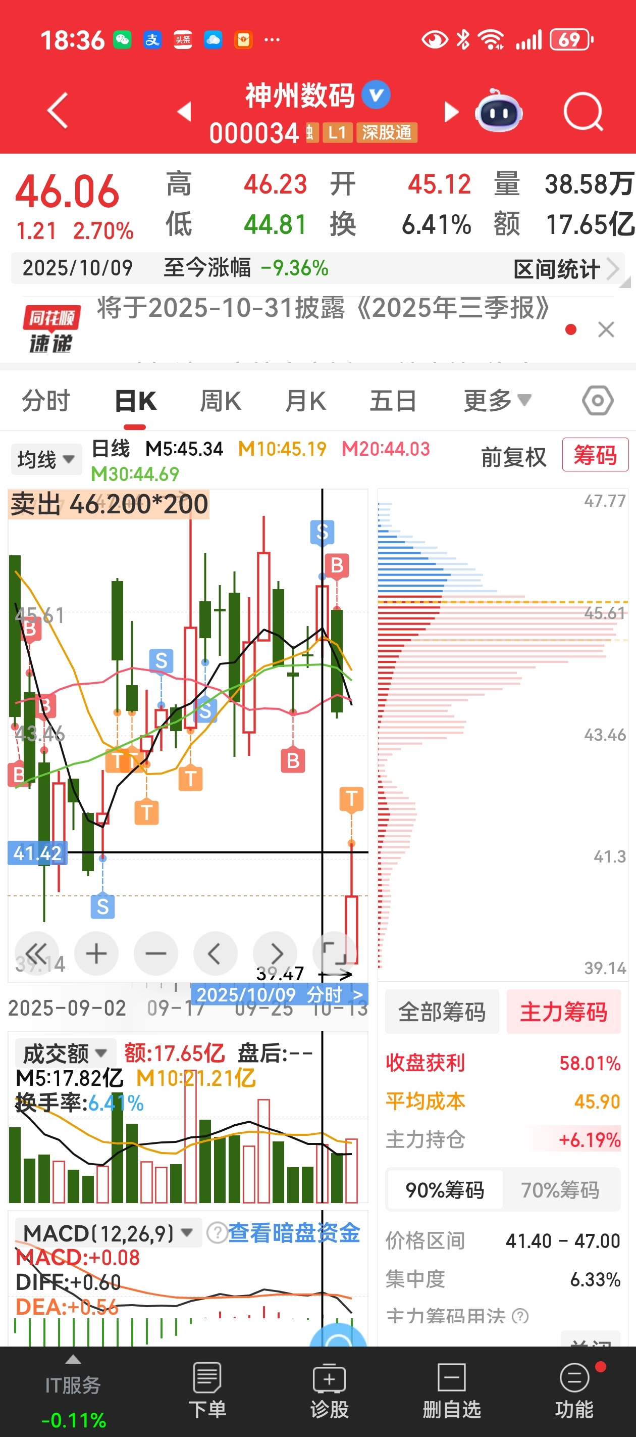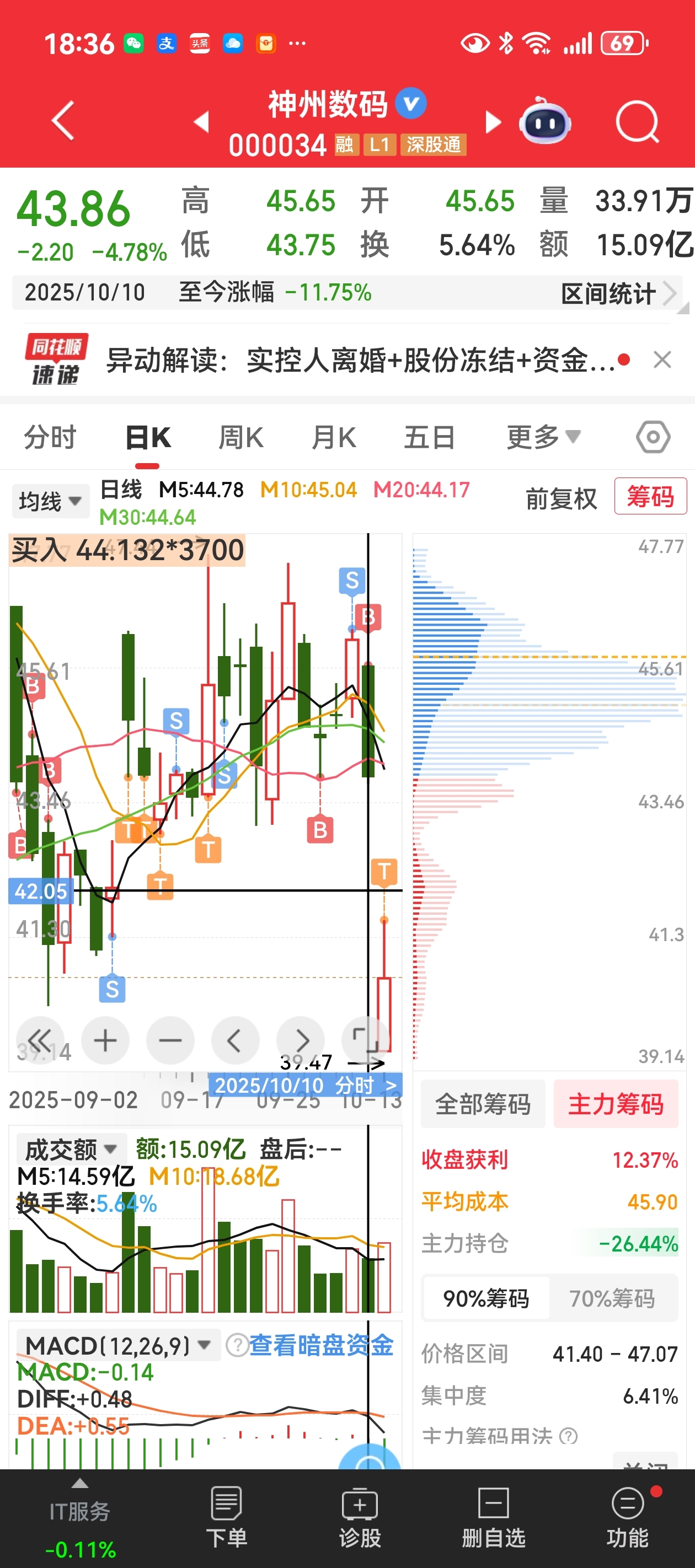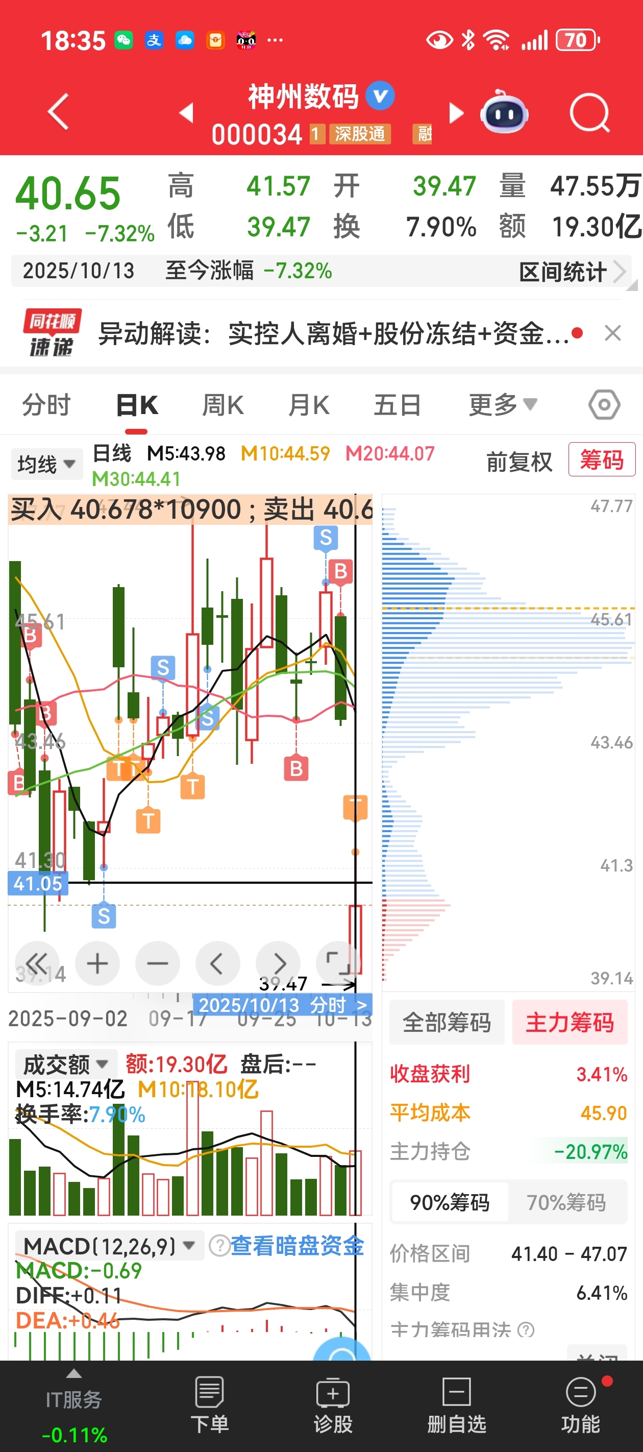 $神州数码(SZ000034)$ 连续三个交易日主力成本没变,只能说主力玩了个寂寞,大力砸下来并没收集到多少低价筹码,看来大伙都不太愿意割肉出局,这可要愁死主力了,继续下杀恐怕主力筹码都要丢失了,今天不敢在跌停位置多坚持几秒就很能说明问题