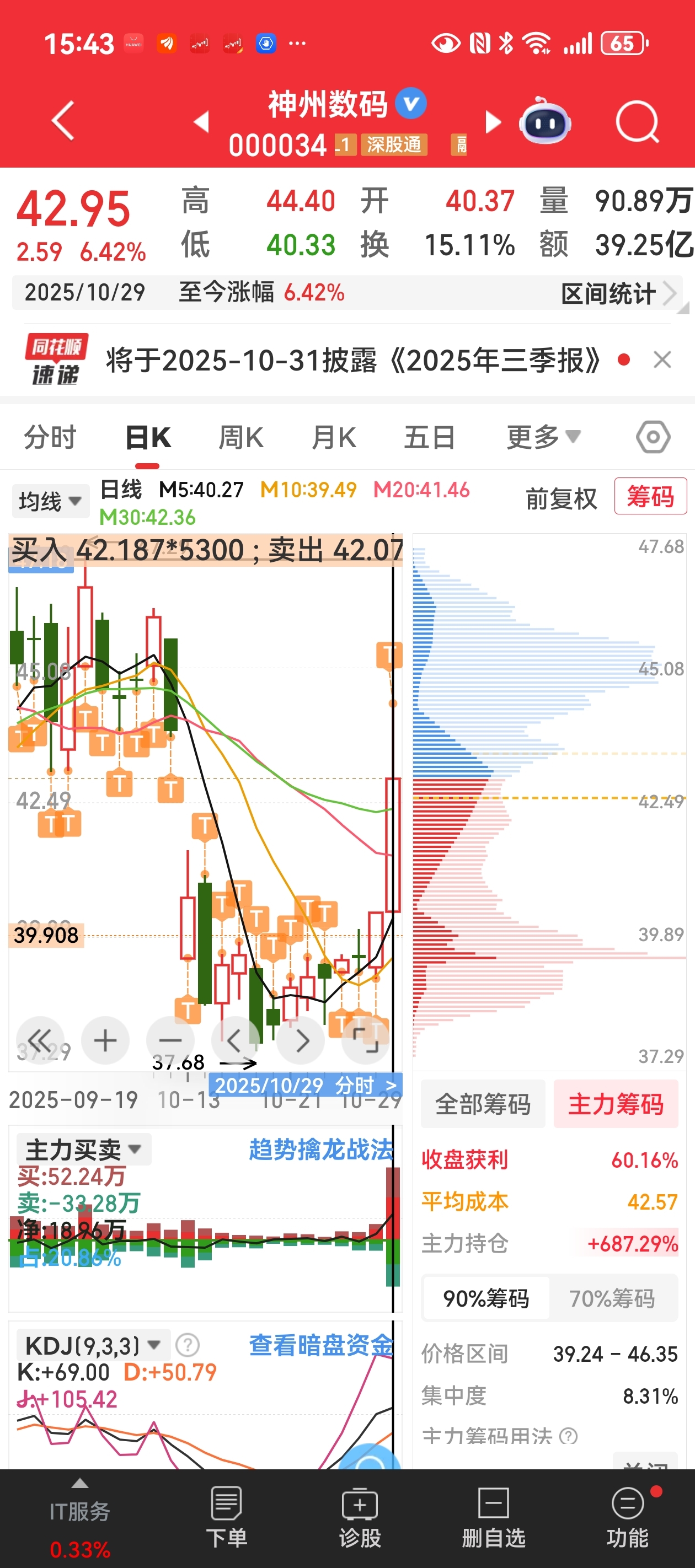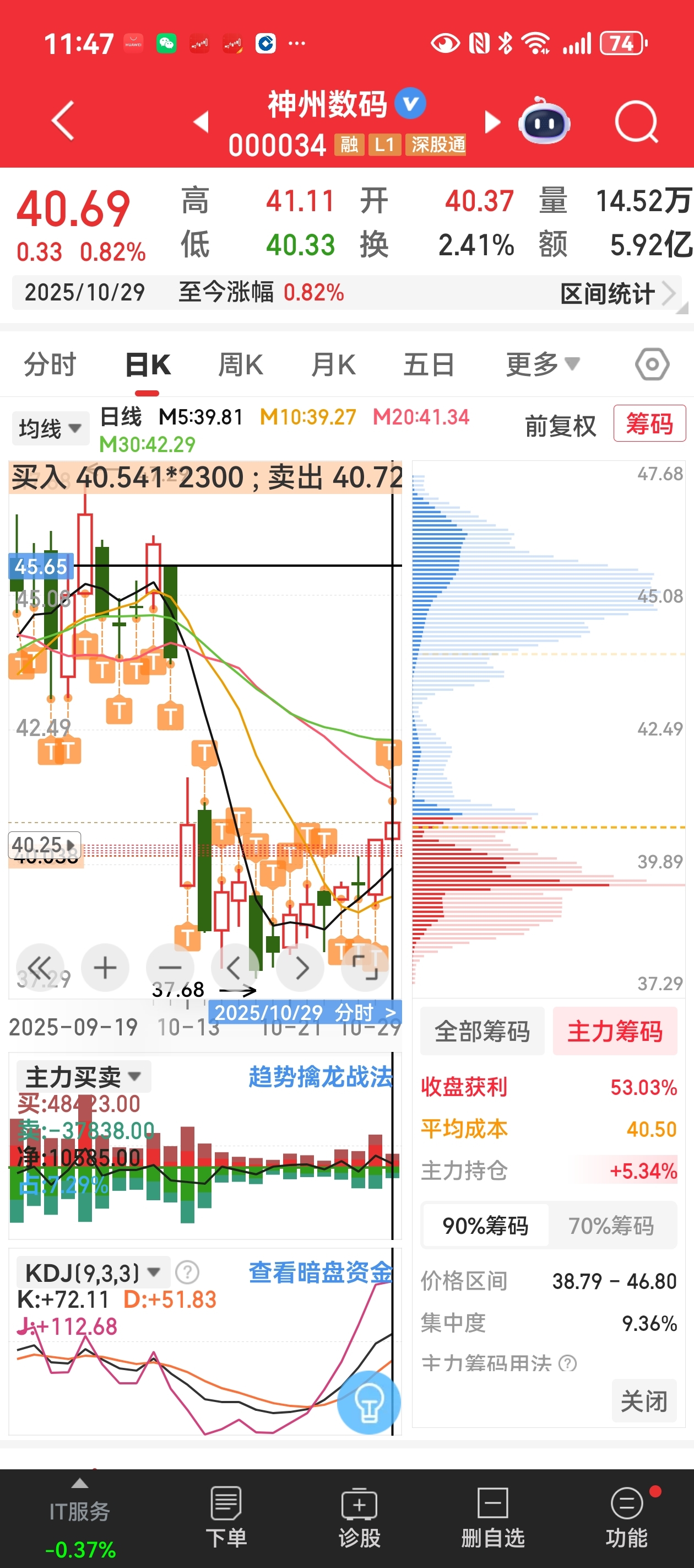 大家看看上午及收盘后主力成本、筹码的变化,成本又有大幅度的提高,说明下午继续大量