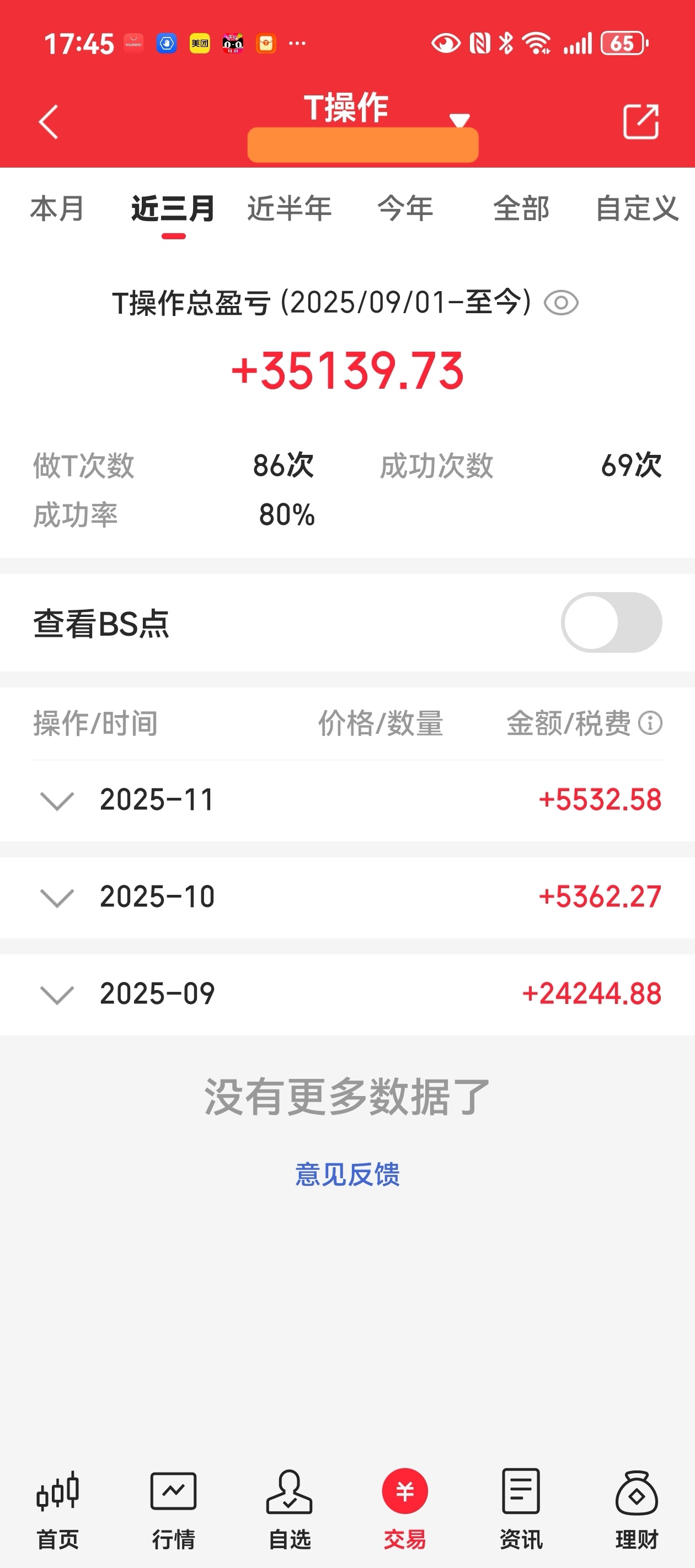 呵呵,这几天普通帐户T的收益赶上了10月的收益,难道明天还有更大的惊喜在等待?