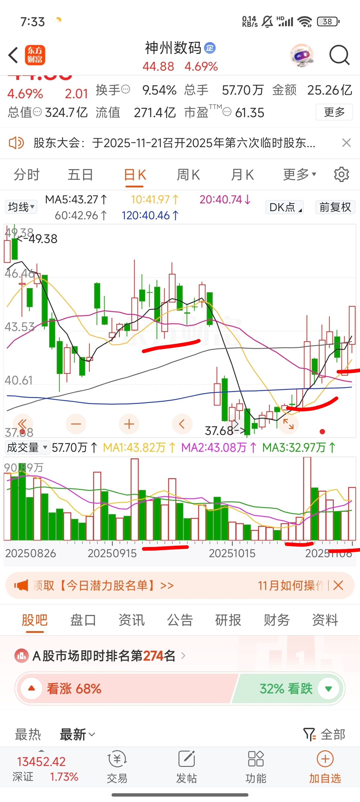 $神州数码(SZ000034)$ 缩量过前高,等四吧