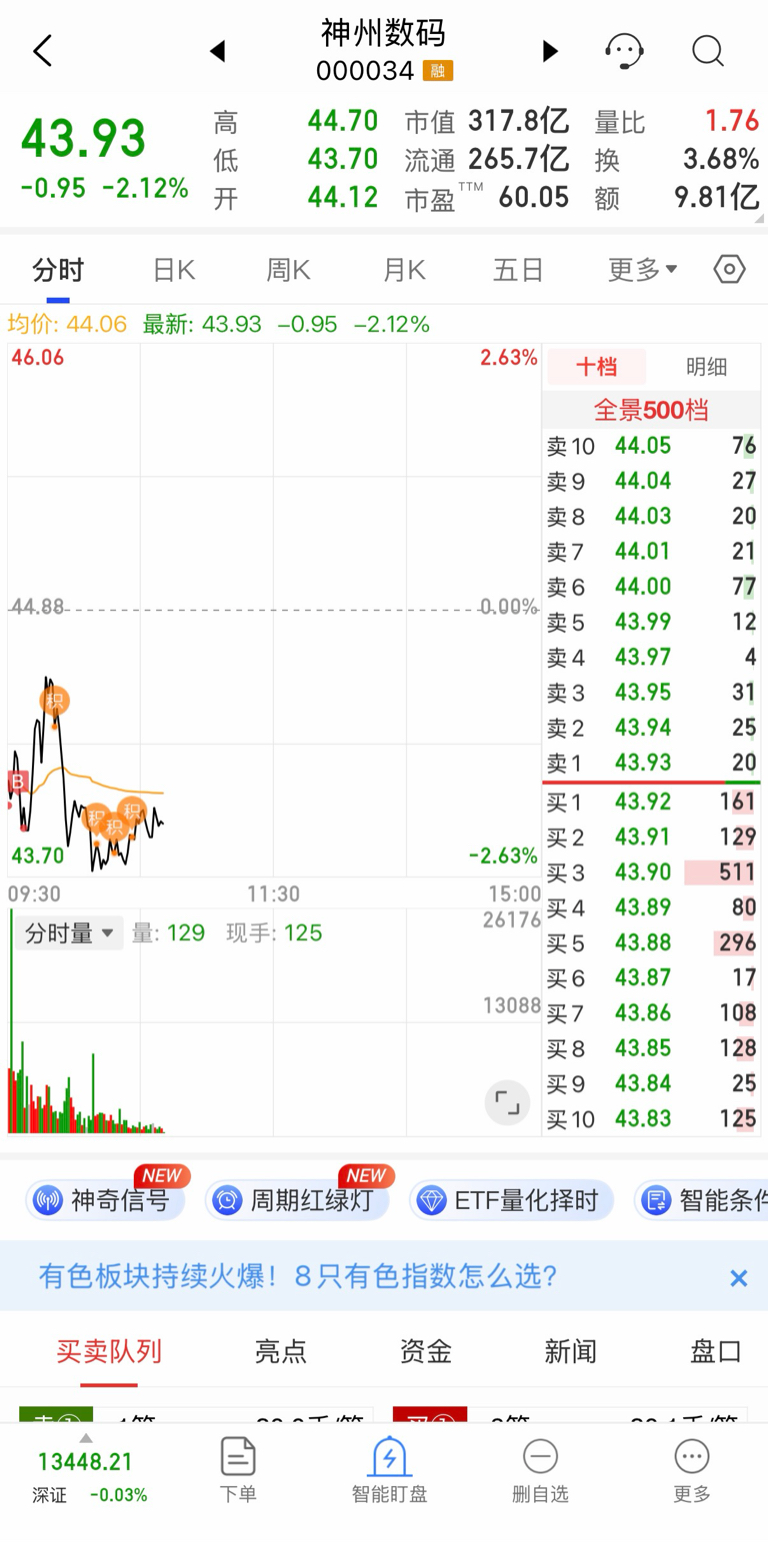 $神州数码(SZ000034)$ 昨天高点抛一部分,今天主力又给机会低买,爽歪歪