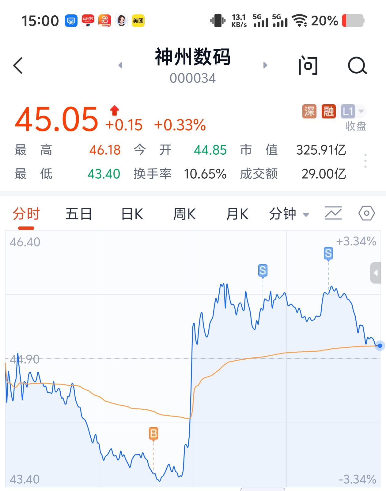 $神州数码(SZ000034)$ 今天唯一开心的点,其他股都跌惨了
