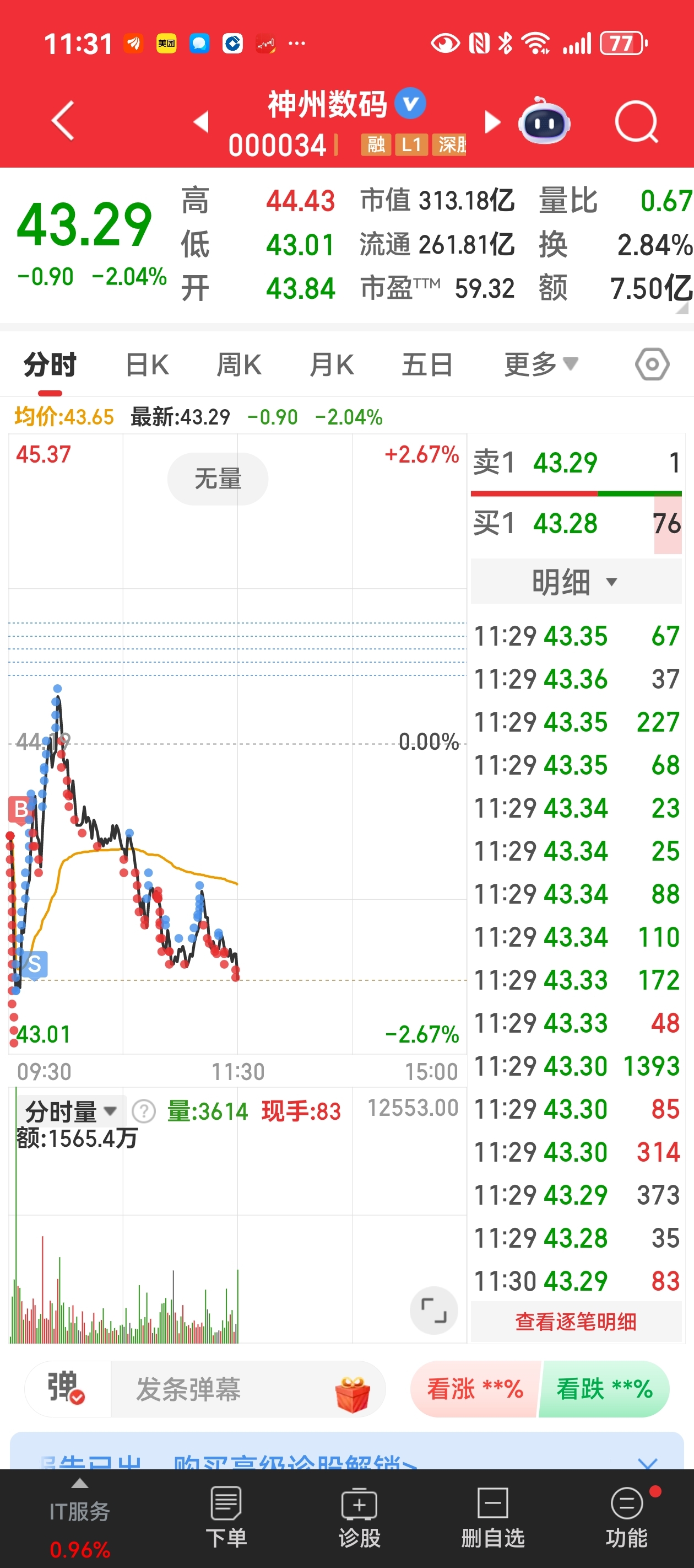 $神州数码(SZ000034)$ 随跌的步伐吃进,随涨的脚步踢出