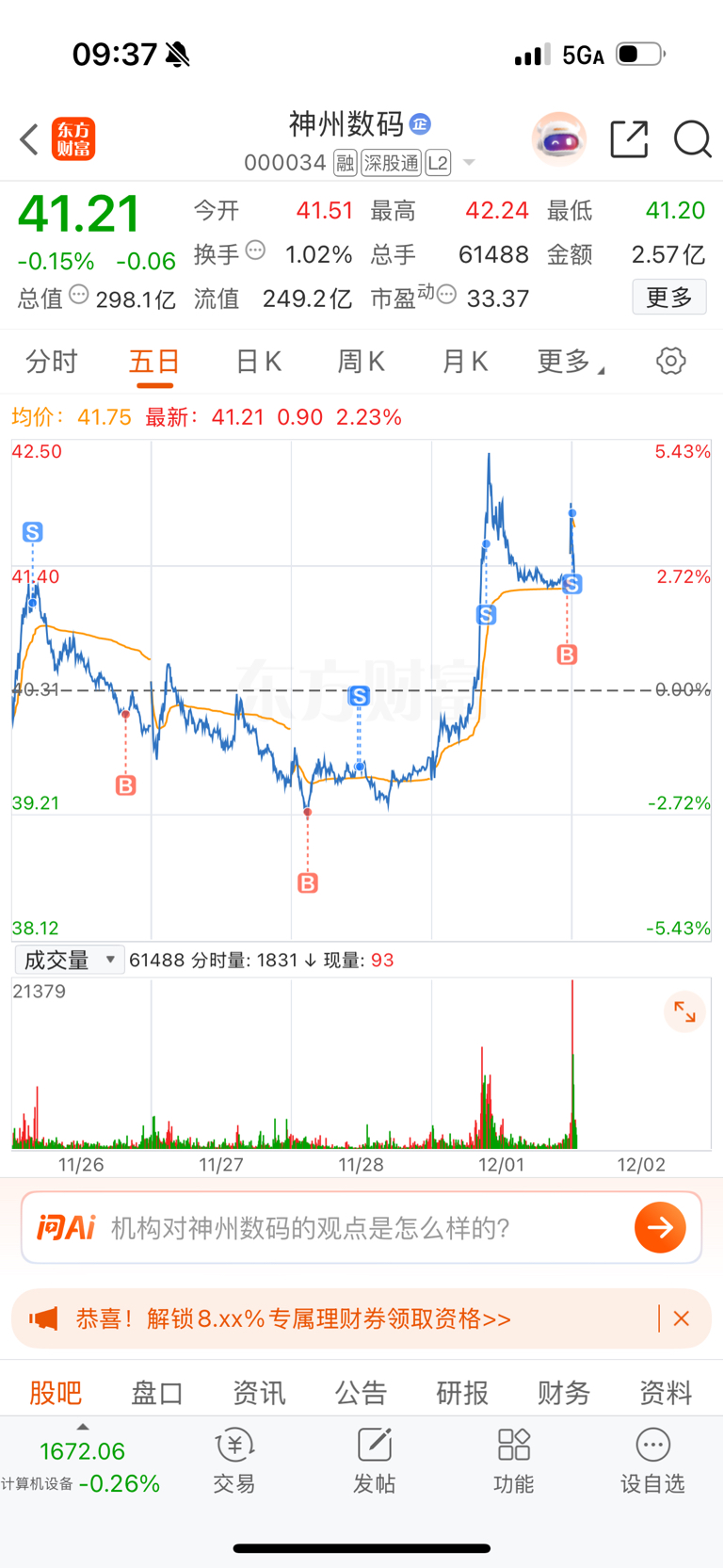 $神州数码(SZ000034)$ 高开就跑,祖训牢记