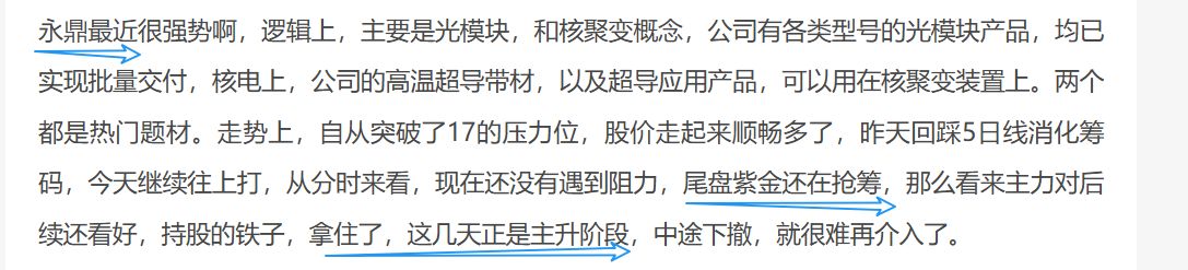 思路上,早盘一字定方向,华菱线缆早盘成为紫金最强的方向,因为其为商业航天箭体供货的线缆产品,每枚达到千万价值量。所以带动线缆板块走强,永鼎股份,公司也有电线电缆,高温超导带材等制造业务,且布局在商业航天,核聚变等领域,早盘顺势拉升封板。这个票船长昨天下午还提势了,最近股价突破17块的压力位之后,极其强势,走出了主升浪行情,昨天尾盘紫金抢筹,就是准备今天开始持续拉涨。从封板情况来看,明天应该还有一波冲高,直到放量超过70亿的时候,才是永鼎股份见顶的时候,持股策略就按照这个量能来对比。