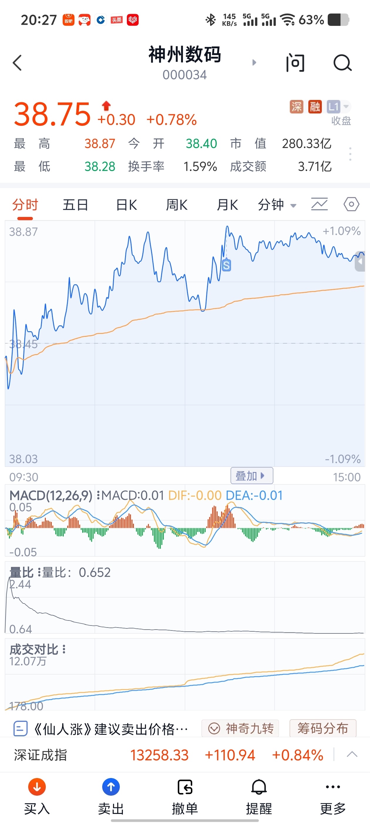 $神州数码(SZ000034)$ 今天做了4个股的t,3个卖飞了,就神州暂时卖在最高点,周一低开接回