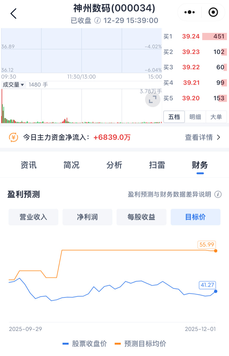 $神州数码(SZ000034)$ 明天跌,千万要满仓买入。绿K悬空,后面必有涨停。拿个半年左右,机构预测目标价56。