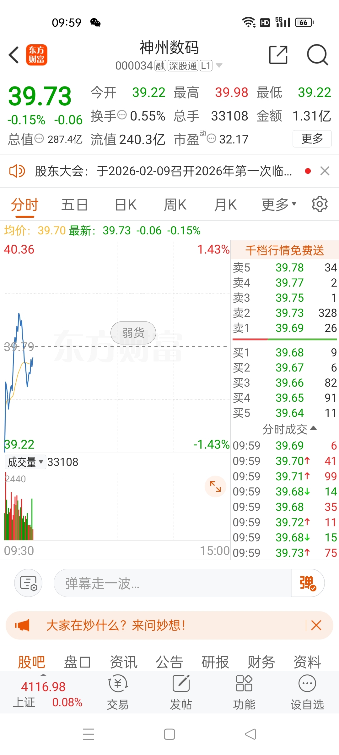 $神州数码(SZ000034)$ 主力今天糊涂啊,做了个反t,现在主力只能压盘!