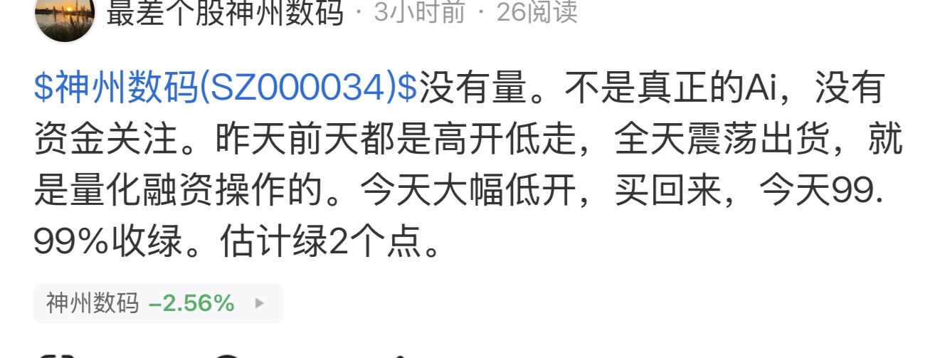 $神州数码(SZ000034)$ 那个被套傻的,天天说底部筹码的,你快去接呀