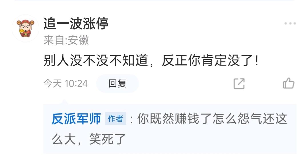 既然你赚钱了还这么着急怨气这么大干什么,默默赚你的钱不好吗,这种人在里面一年了天