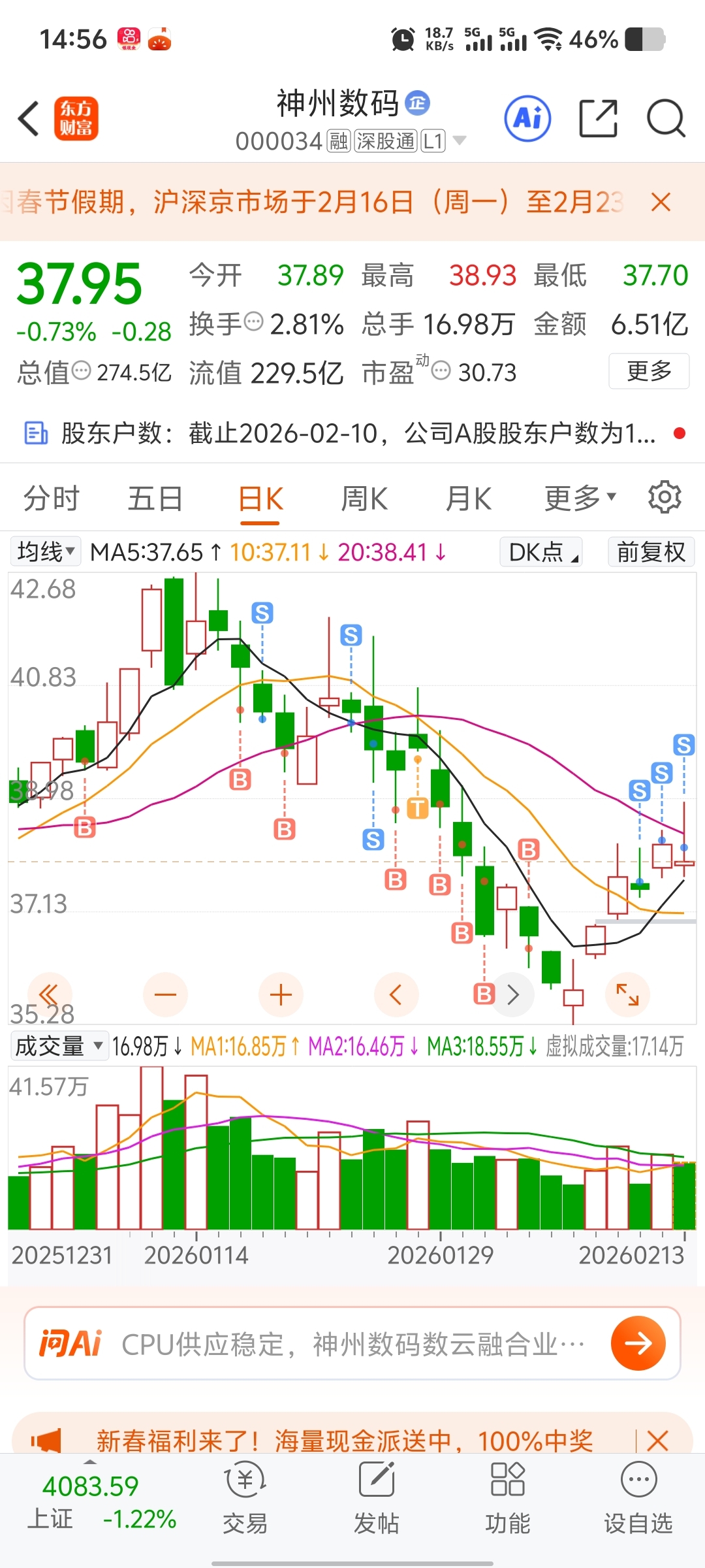 $神州数码(SZ000034)$ 卖完了可以涨了