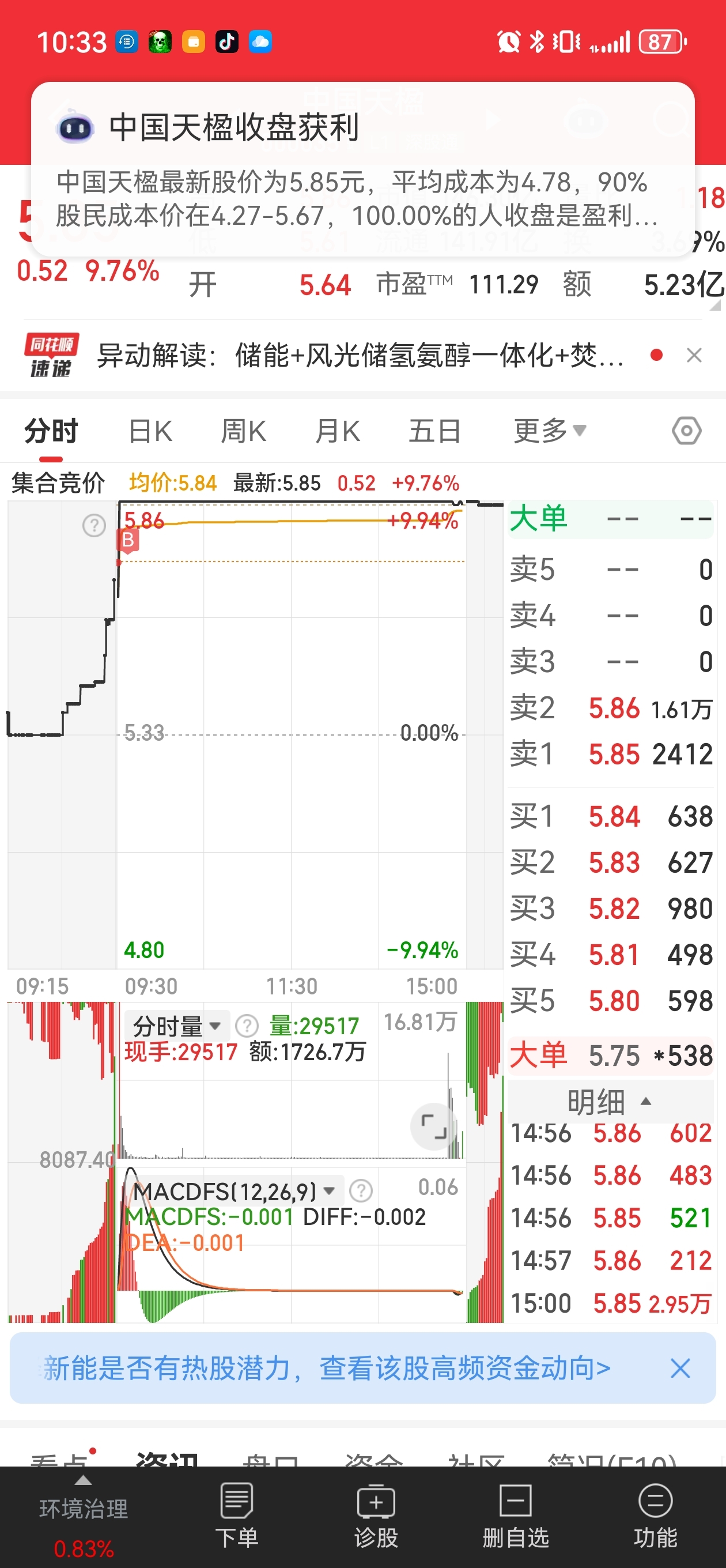 炸的没理由,今天会不会大低开#炒股日记# #强势机会# #实盘记录# $中国天楹(SZ000035)$
