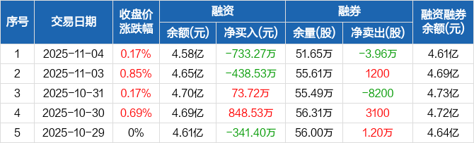 中国天楹:融资净偿还733.27万元,融资余额4.58亿元(11-04)