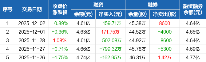 中国天楹:融资净偿还159.71万元,融资余额4.61亿元(12-02)