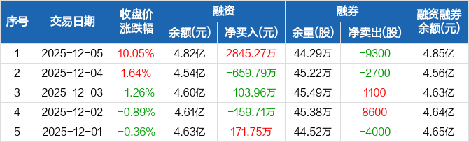 中国天楹:融资净买入2845.27万元,融资余额4.82亿元(12-05)