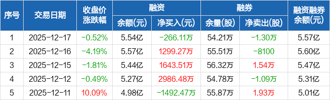 中国天楹:融资净偿还266.11万元,融资余额5.54亿元(12-17)