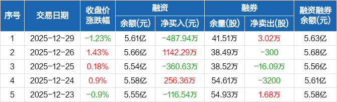 中国天楹:融资净偿还487.94万元,融资余额5.61亿元(12-29)