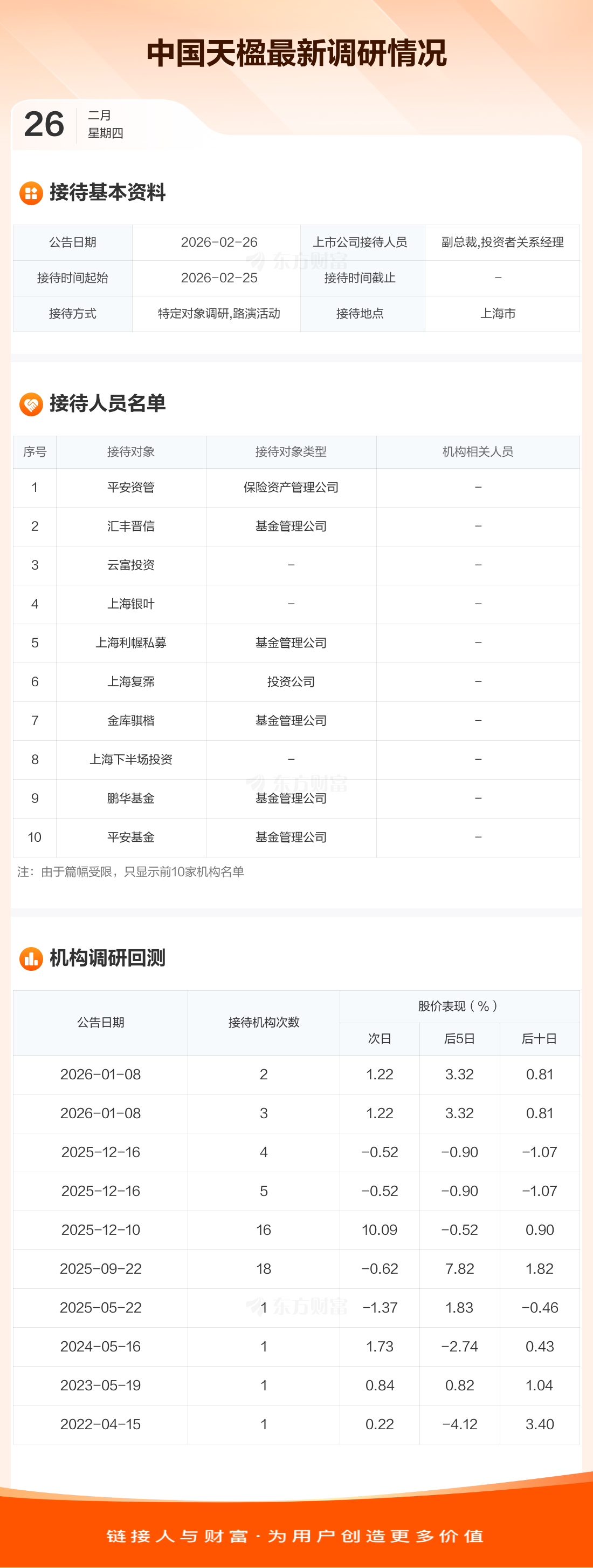 中国天楹2月26日公告称,2月25日接待平安资管等20家机构调研。接待人员包括副总裁,投资者关系经理。