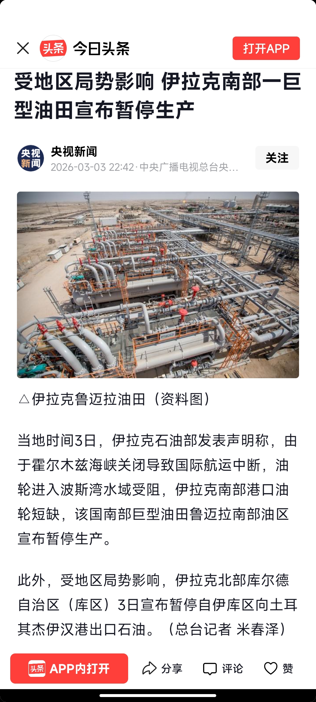 $中国天楹(SZ000035)$ 聪明的伊拉克,自己关停好过被弄停,卡塔尔那些设施大概率这几天要被弄了,这货没事找事,干别人俩灰鸡,这会一锅粥乱炖了。石油天然气票强的买不到,买得到的大概率也是不行了,不如守着这甲醇,毕竟这东西国内一下子就少了55%的进口量,国产替代是肯定要提速了,争取2个月投产吧,现在不是价格问题,是国家能源安全战略问题了。加油哦!