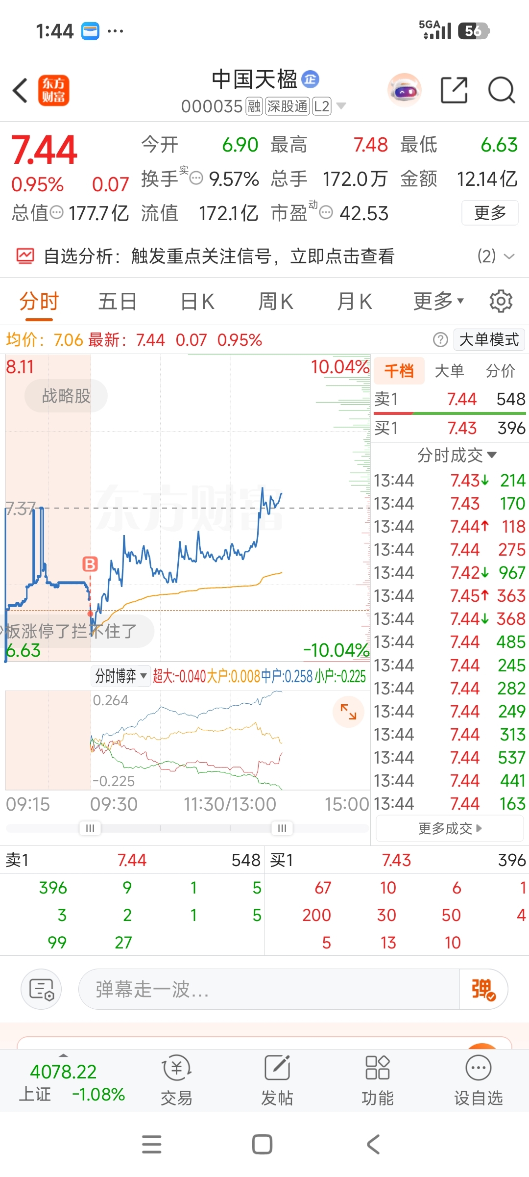 $中国天楹(SZ000035)$ 你要是到7.50我在买200手
