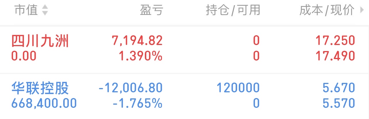 $华联控股(SZ000036)$ $四川九洲(SZ000801)$ 入了,明天冲高就走