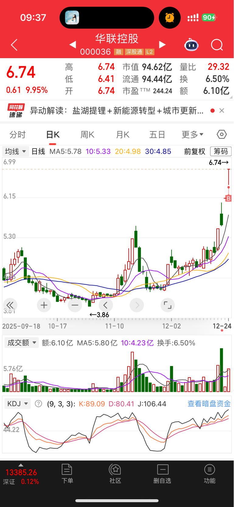 12月24日:买入:华联控股操作记录请勿跟票,你的赢亏自己负责。