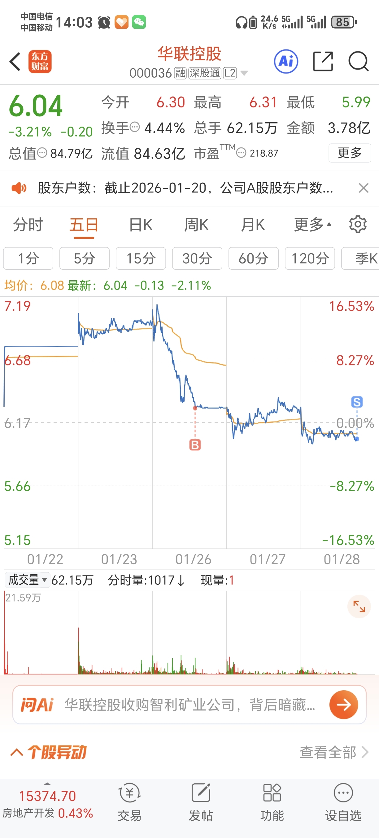 $华联控股(SZ000036)$ 太坑人了,昨天走的多好,唉,亏了5个点,走了,人麻了