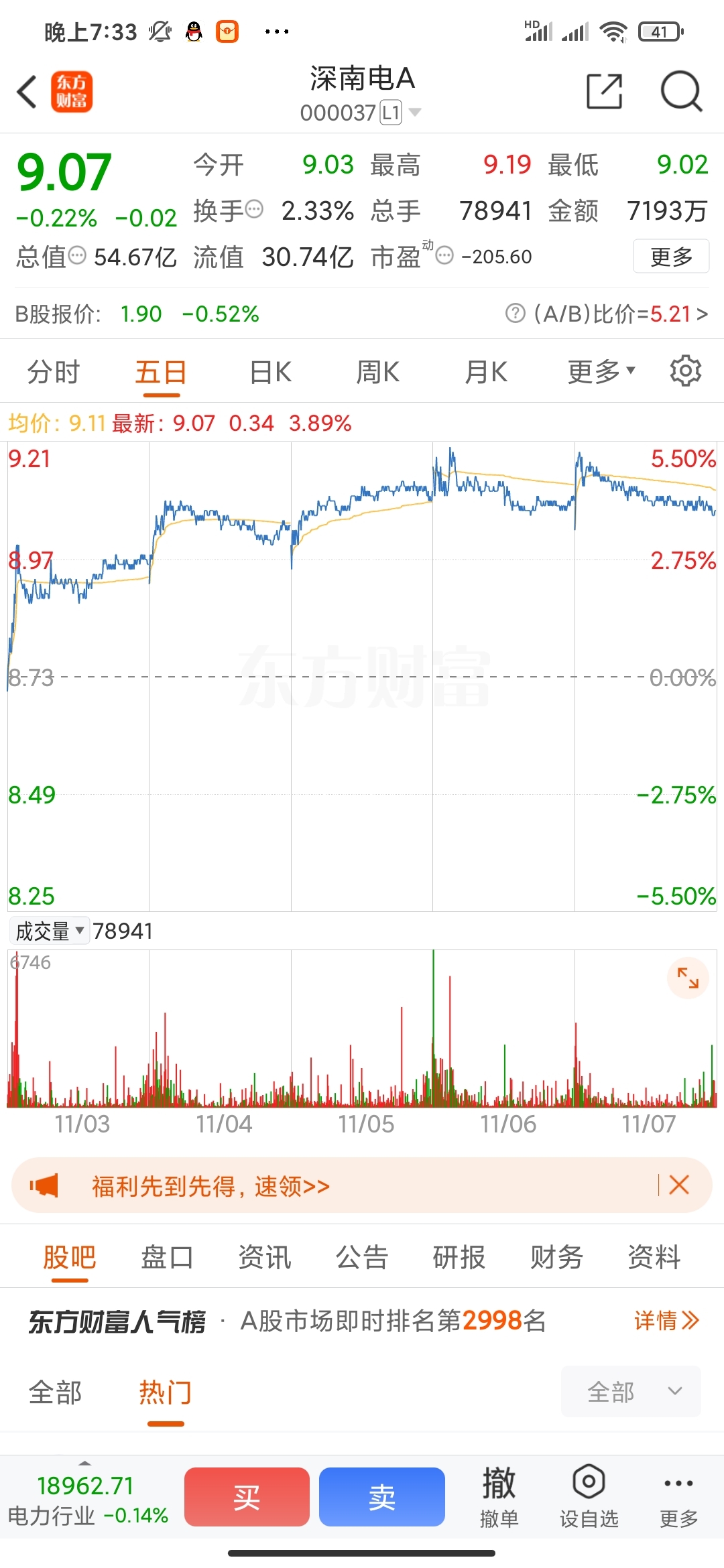 $深南电A(SZ000037)$