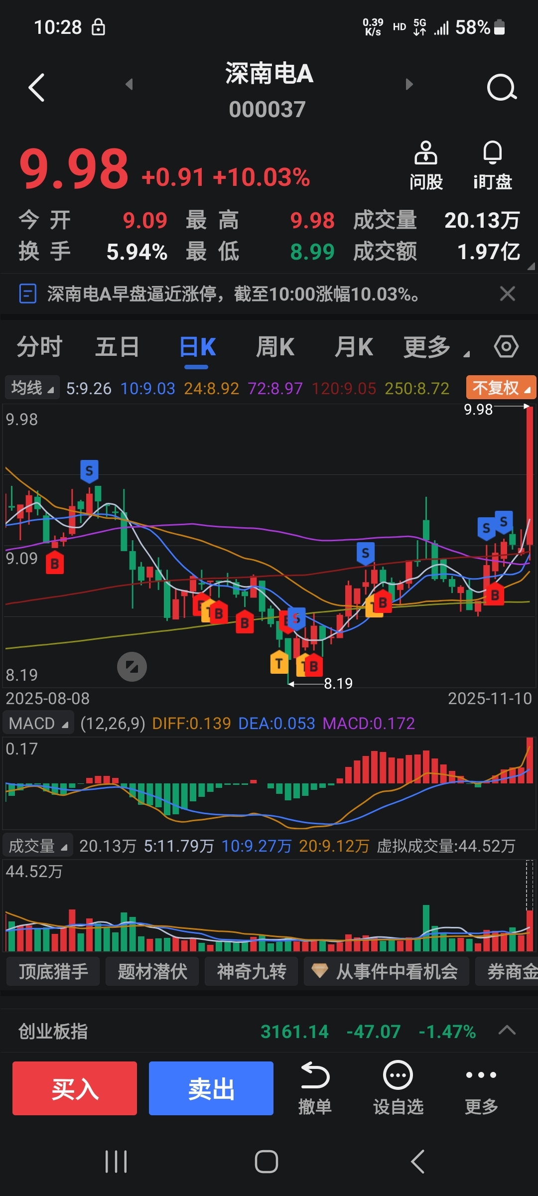 $深南电A(SZ000037)$ 守了你一两个月,就是差我那三瓜两枣,我一卖完就涨停,主力把我玩得明明白白的