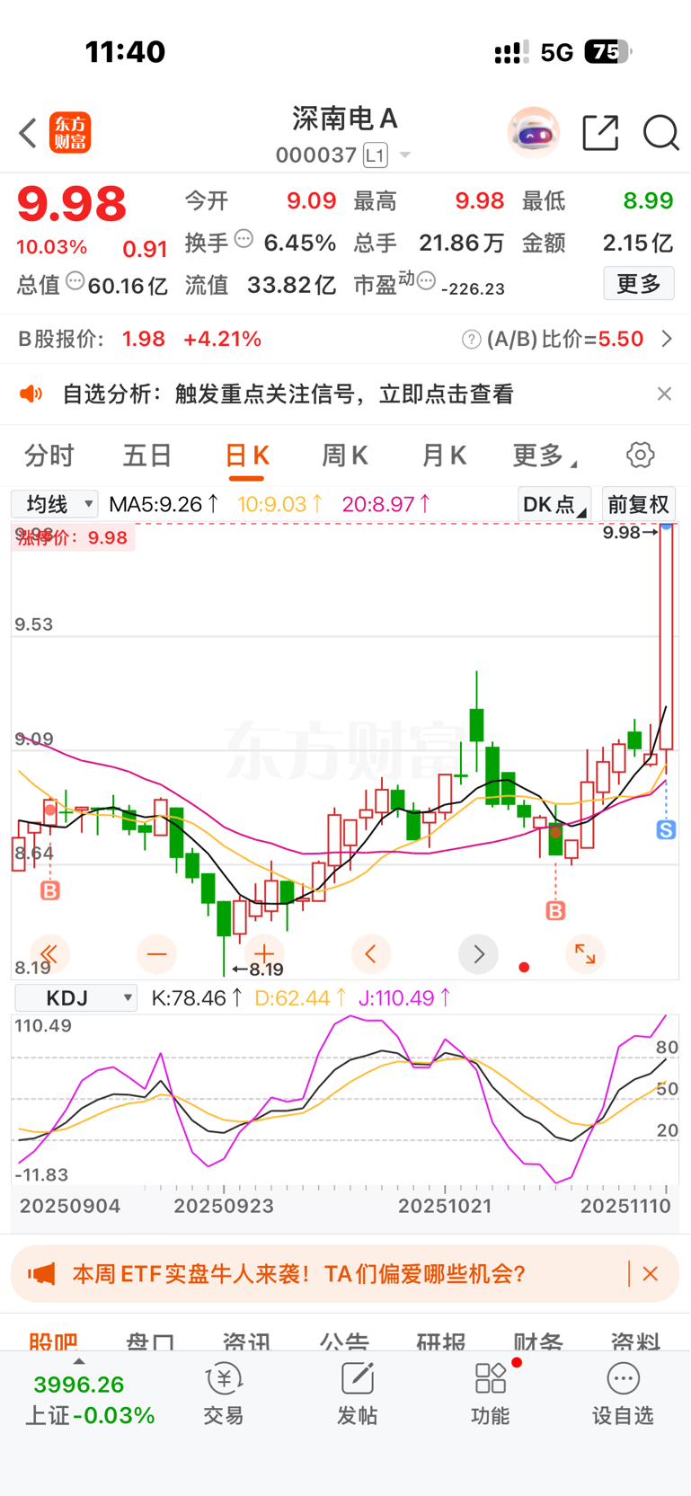 $深南电A(SZ000037)$ 没空看,挂涨停居然卖了!