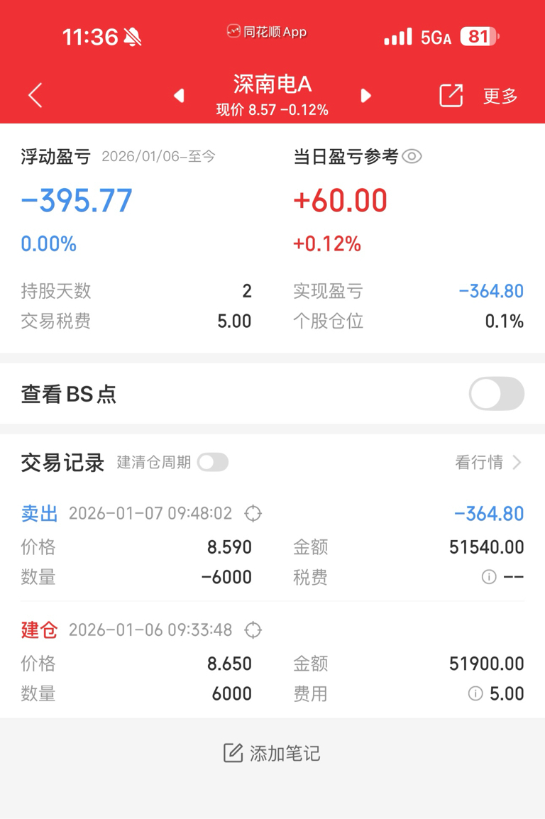 $深南电A(SZ000037)$ 这股真是一点也不能格局。前夜那么大利好,中标合同虽然周期长但几乎是市值的5/1,就这都毫无波澜。昨天小仓位进来试水,今天一早看量能起不来,红1分钱跑了,整体亏6分,唉!